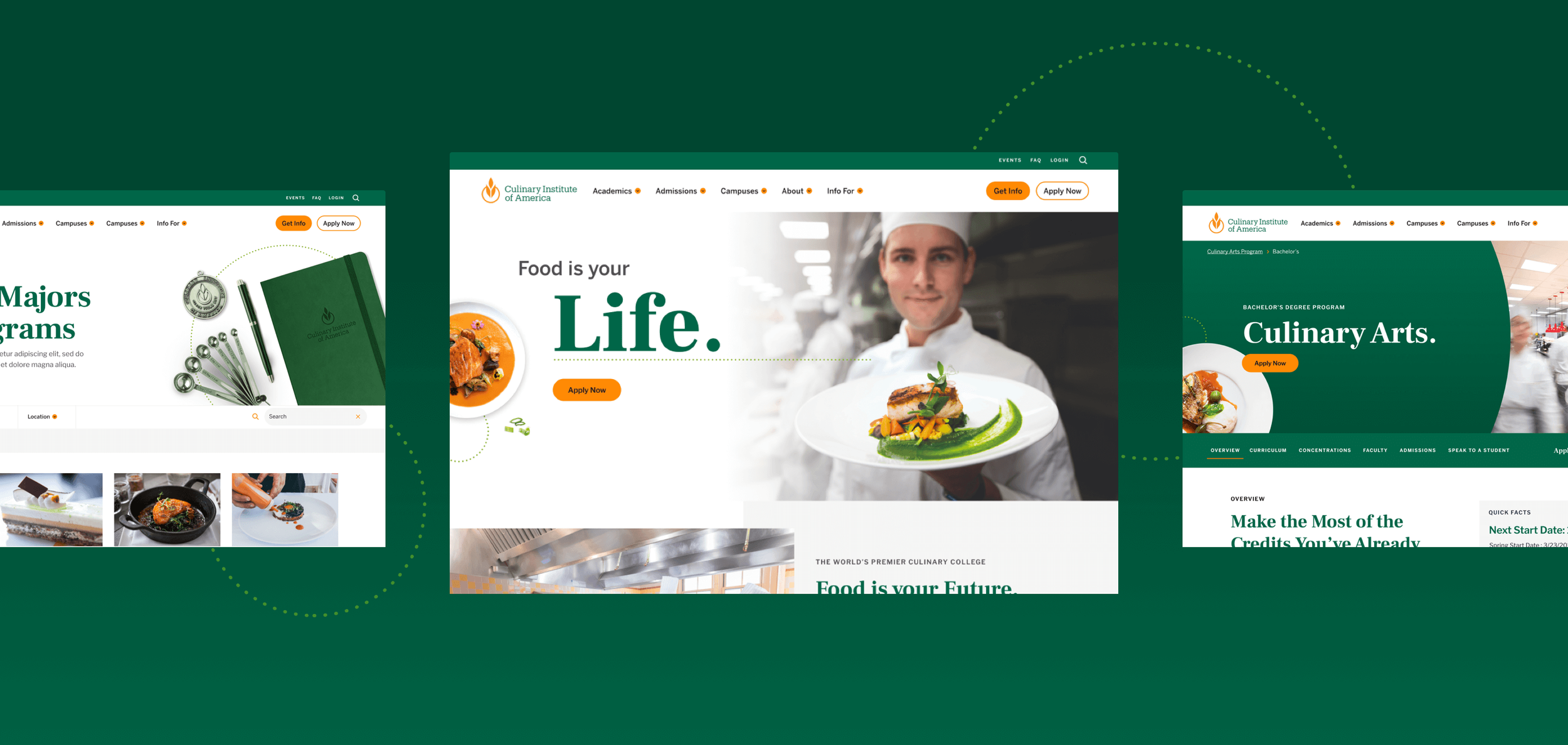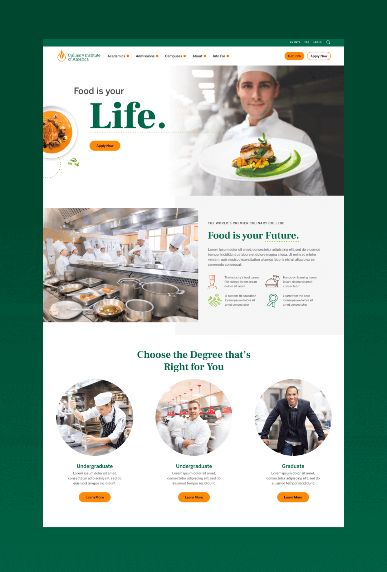 A website redesign with a focus on creating a vibrant, user-friendly experience for prospective students. The goal was to modernize the site while showcasing CIA’s status as a world-renowned culinary school.