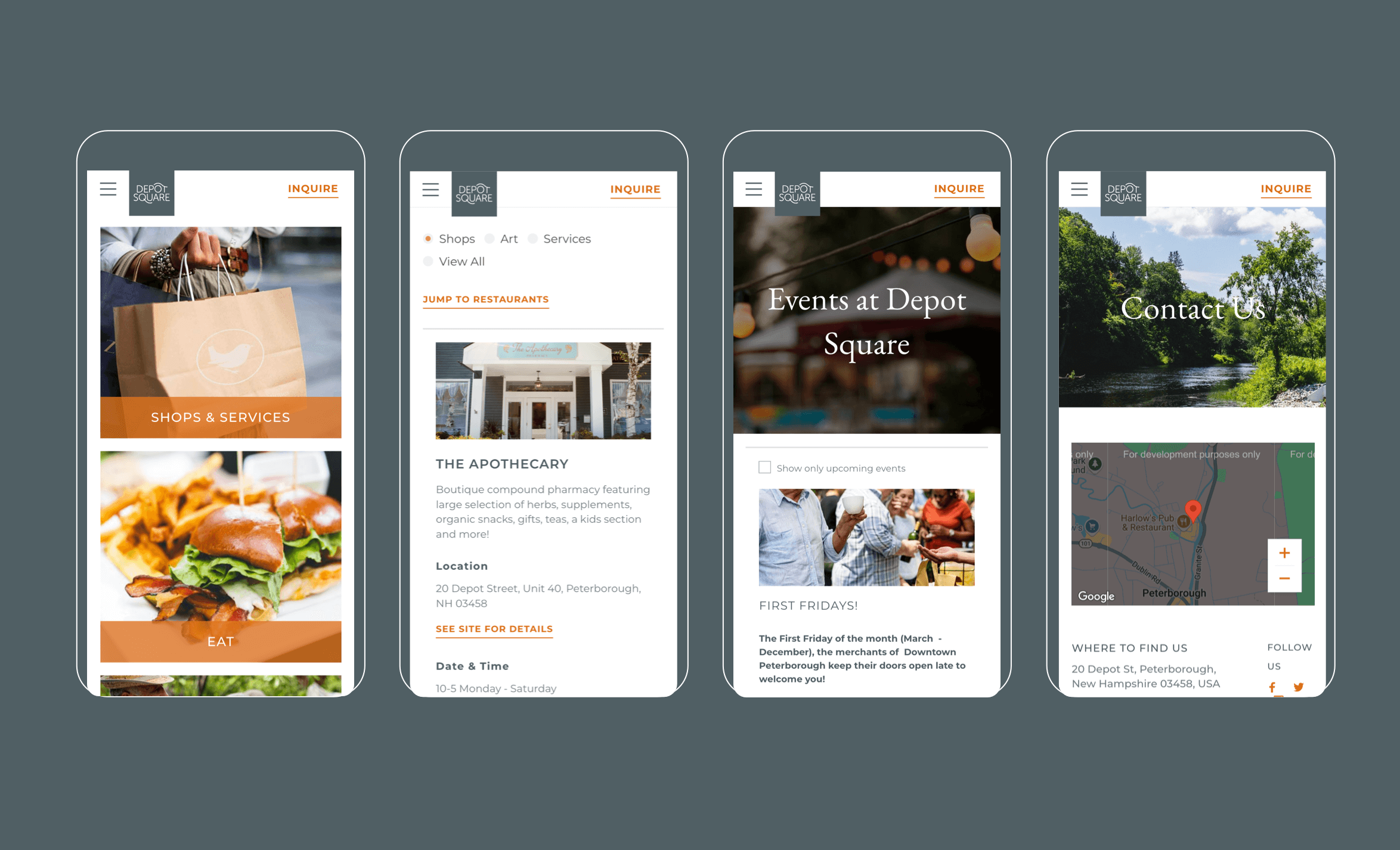 The website design was created to enhance Depot Square’s presence as a unique shopping, dining, and social destination in Downtown Peterborough. The goal was to develop a visually engaging, user-friendly, and mobile-optimized website that allows visitors to easily explore shops, restaurants, and events.